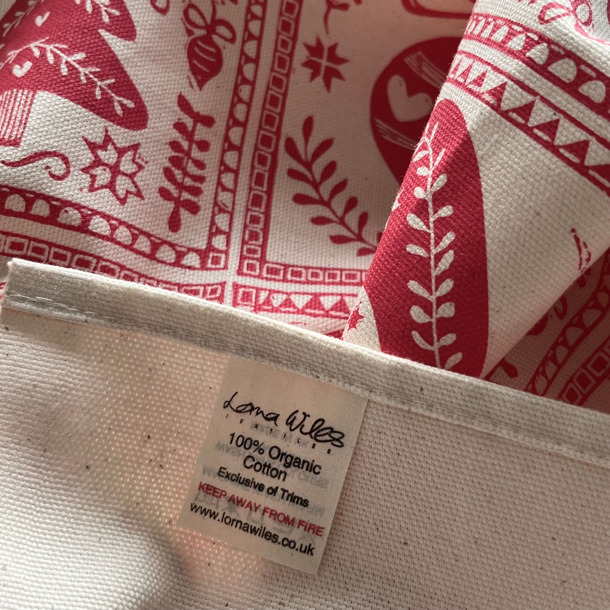 This ethically produced unbleached organic tea-towel features a collection of Scandi inspired Christmas images creating a pretty repeating pattern taken from original Lino-prints. Ideal for a Christmas gift, stocking filler, tray runner, a festive addition to your kitchen or environmentally friendly gift wrap!